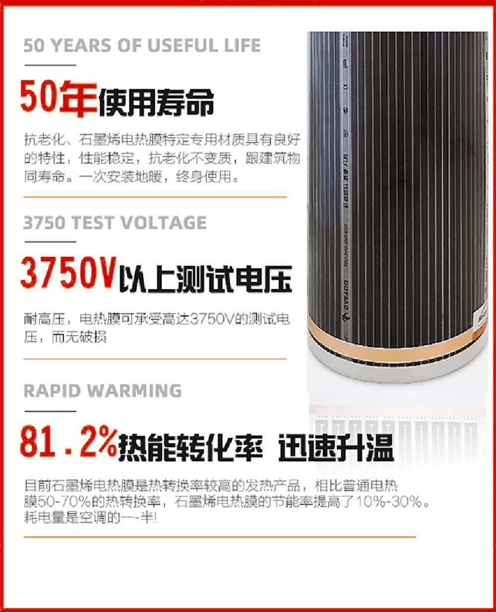 • 石墨烯電熱膜廠家別墅自建房瑜伽健身地暖用