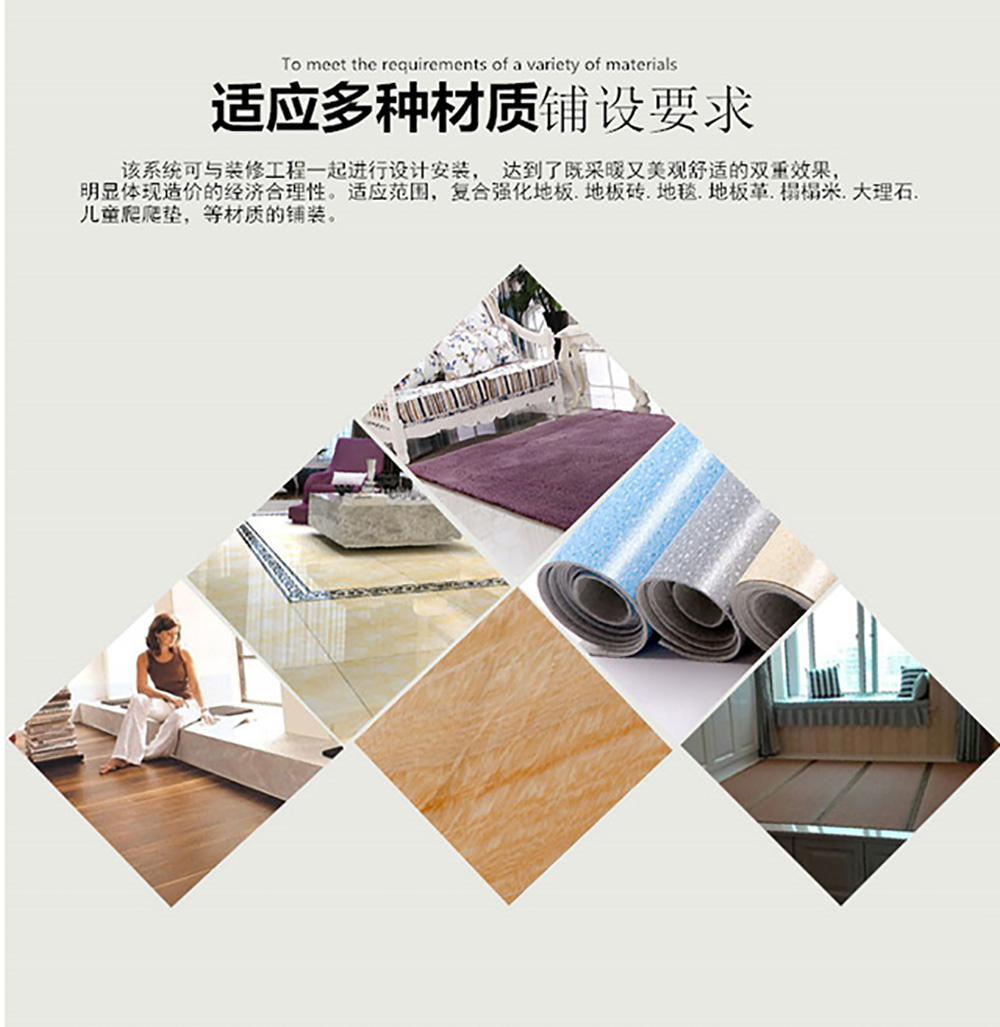 產(chǎn)品特點(diǎn):散熱均勻;遠(yuǎn)紅外輻射熱;鋪設(shè)簡易
